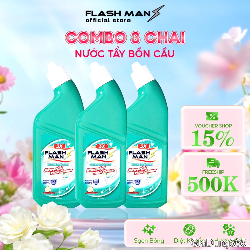 Đánh giá [COMBO 3 CHAI] Nước Tẩy Bồn Cầu Flashman 500g – Diệt Khuẩn 99.9% – Khử Mùi, Tẩy Sạch Vết Bẩn | Shopee Việt Nam