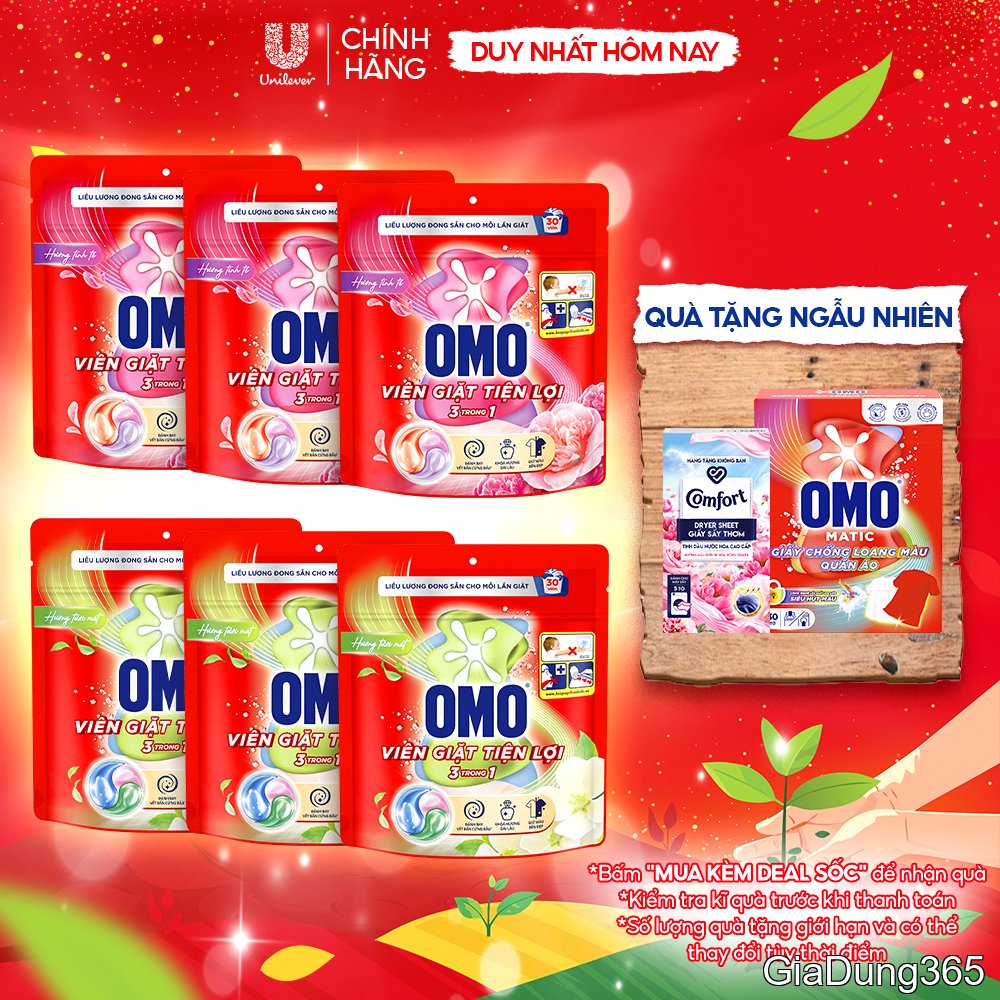 Combo 3 Túi Viên Giặt Tiện Lợi OMO 3 Trong 1 (30 Viên/50 Viên)