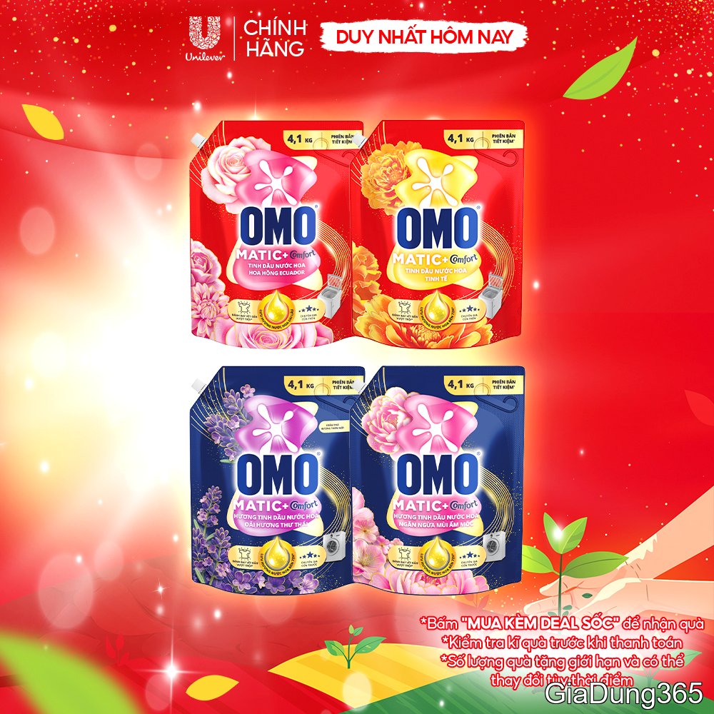 Nước giặt OMO Matic Hương Nước Hoa Comfort 4.1KG (túi) – Hương thơm bền lâu, giặt sạch hiệu quả